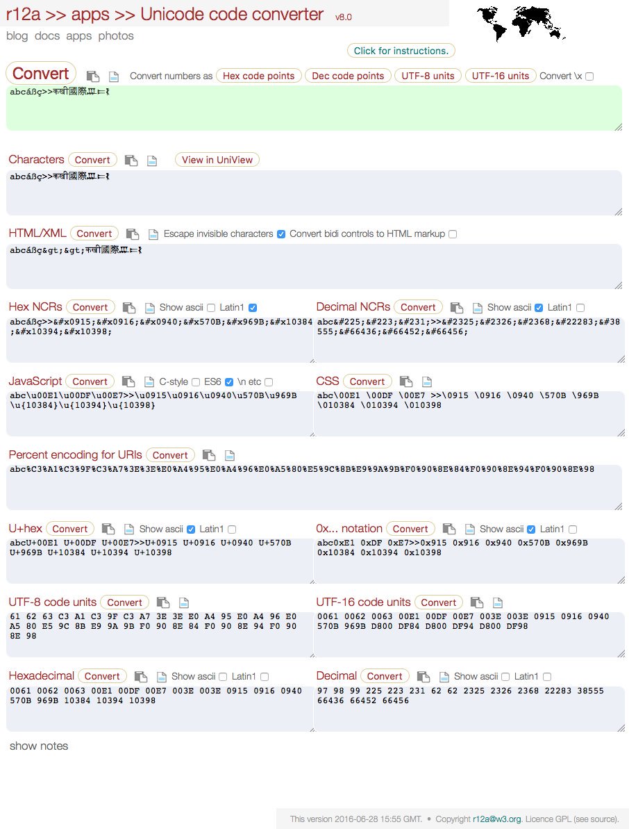 [ Tools ] Unicode Converter v8 released. Adds ES6 supp char escapes, instant option changes etc, see http://rishida.net/blog/?p=1733 https://t.co/FZLGvxHfkR